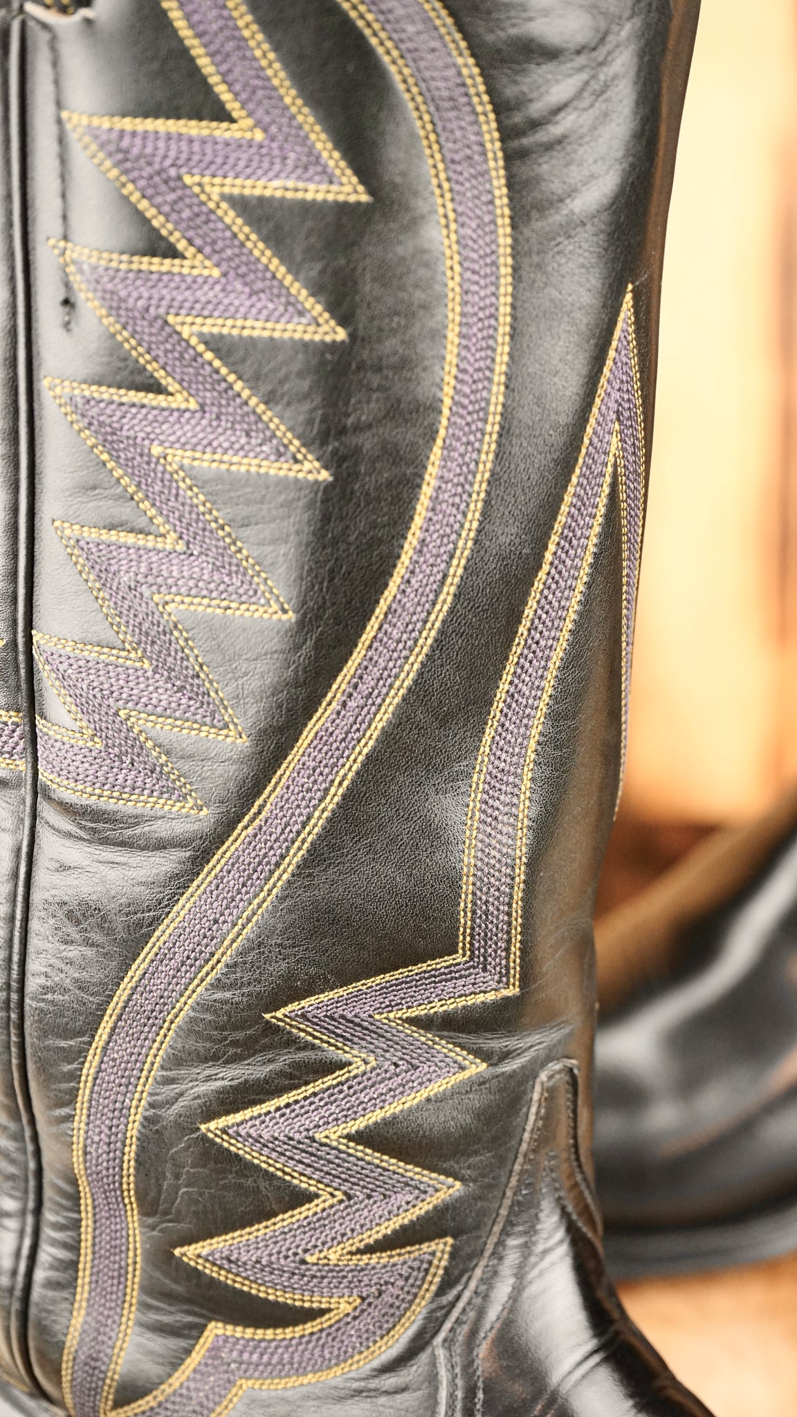Hand Crafted by unknown maker , beautiful 10 row stitch pattern . These boots are not perfect but are all original and made from black calf , Condition is good with signs of wear , they also consist of double row lemon wood pegged soles, boots seem to be of a narrow fit , please refer to the measurements below .