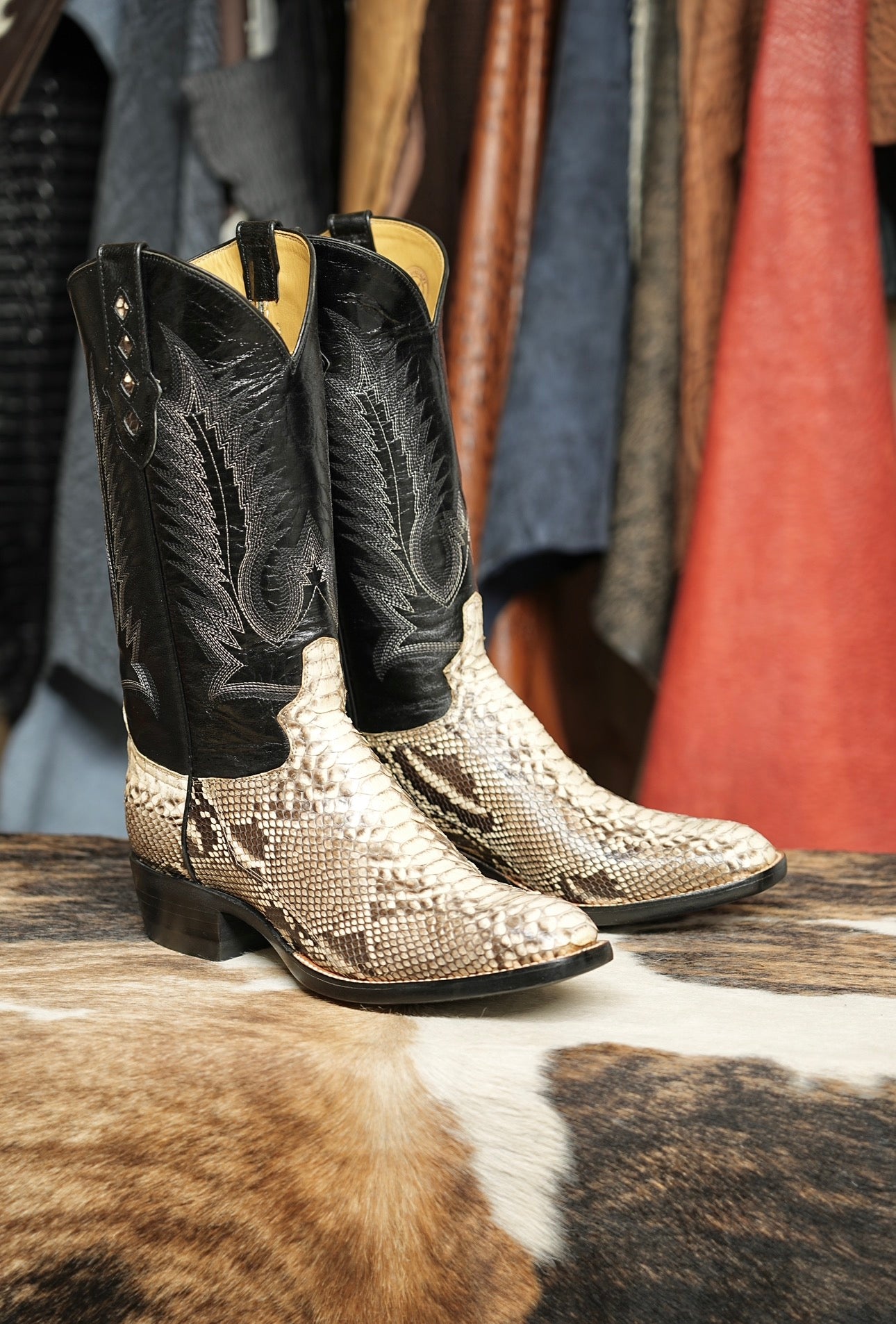 Natural python lasted in french toe style lasts size 9.5D 100% made by hand. This pair is ready to ship!